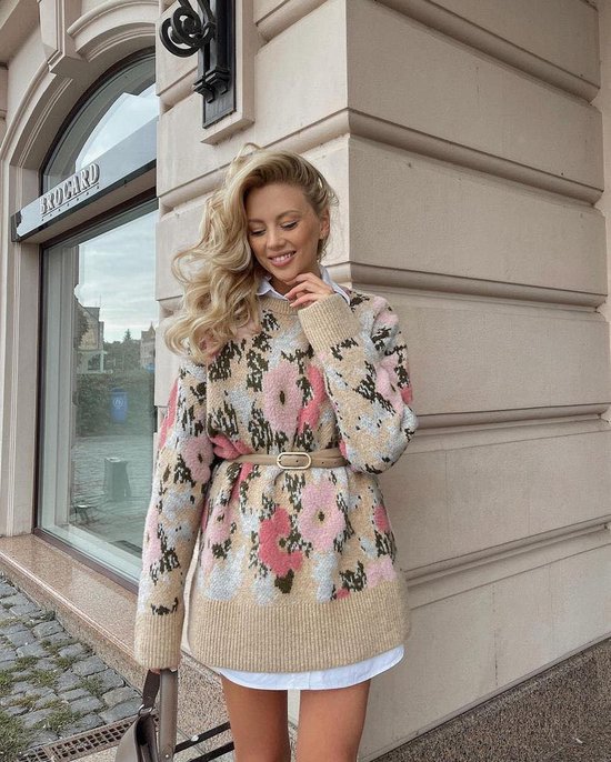 Oversized Trui met Bloemen Tricot Jacquard Camel One size | bol